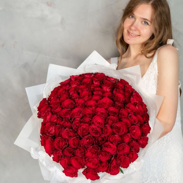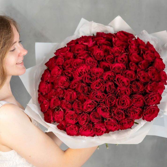 Монобукет из 101 розы 40 см (Кения)