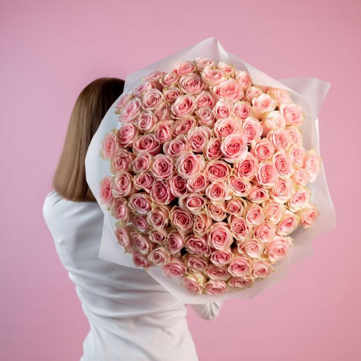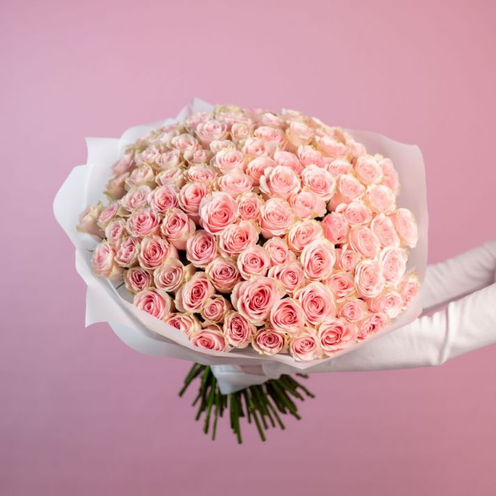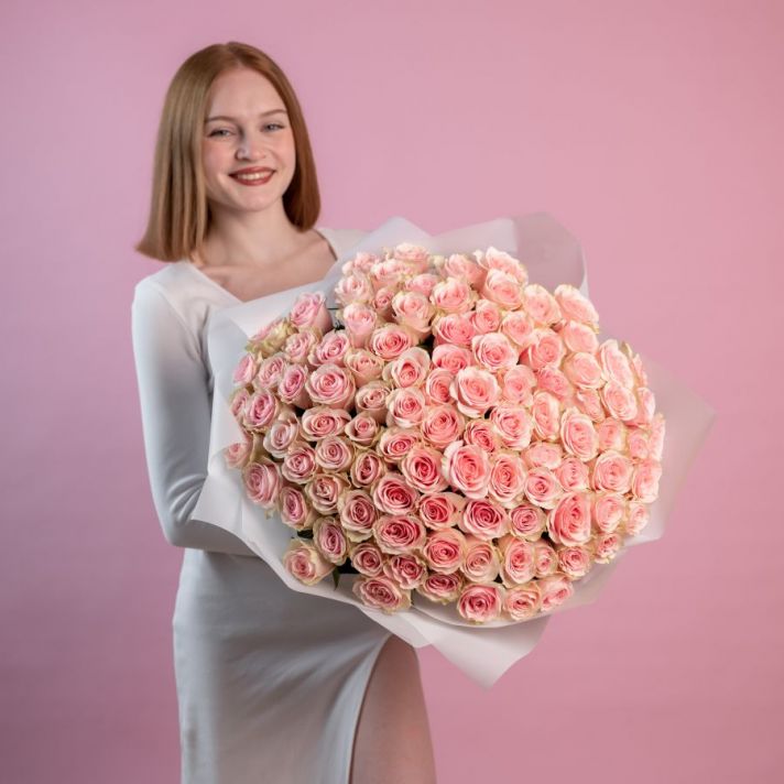 101 розовая роза (фрутетта) в упаковке