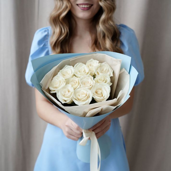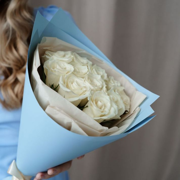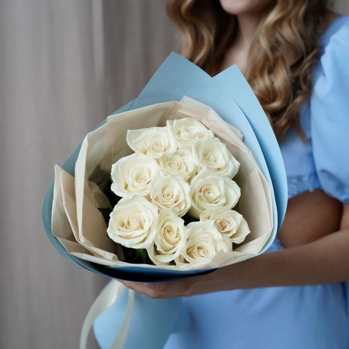 Описание товара "15 белых роз в упаковке (Кения, 40см)"