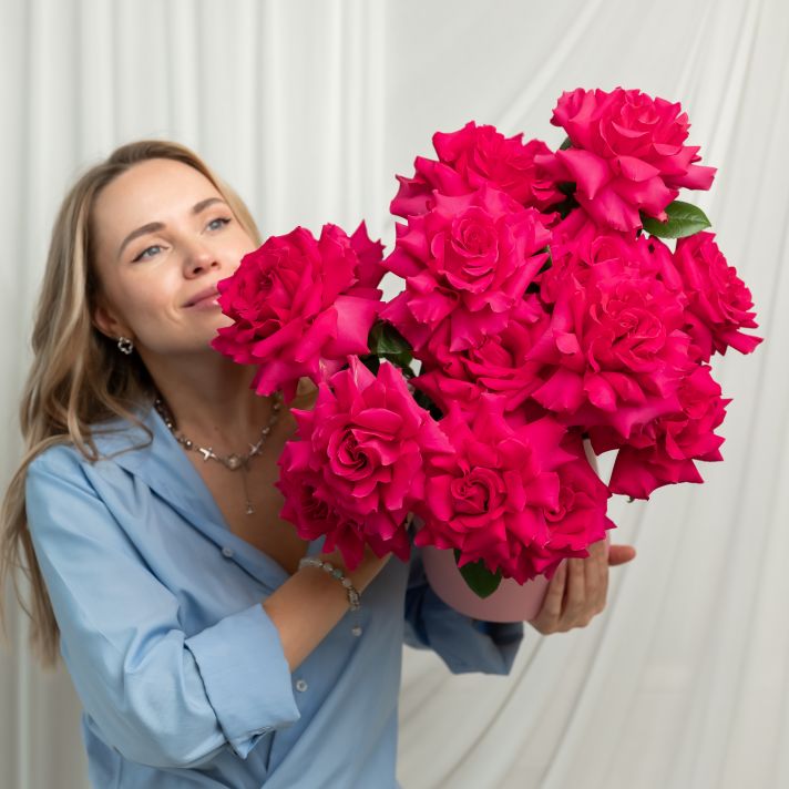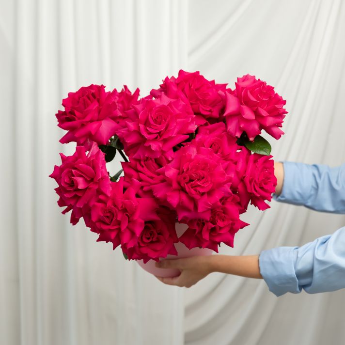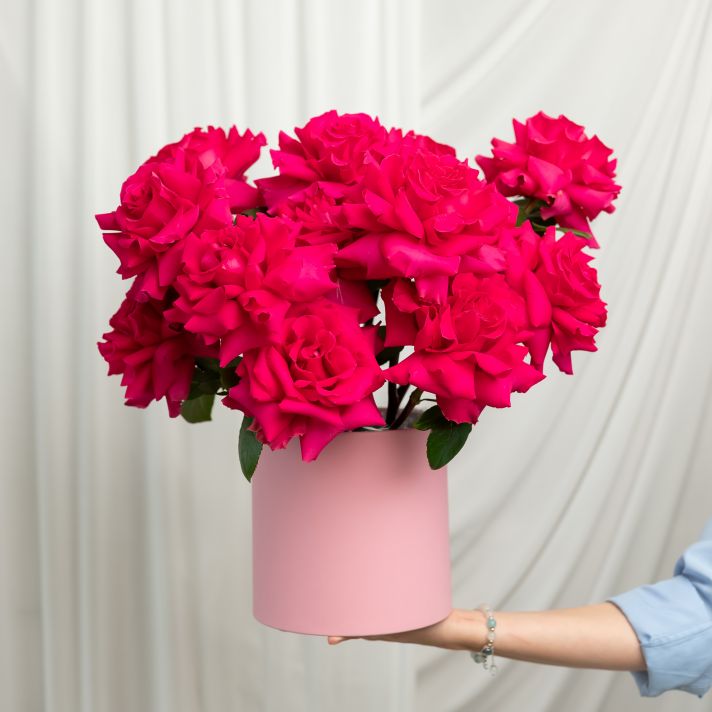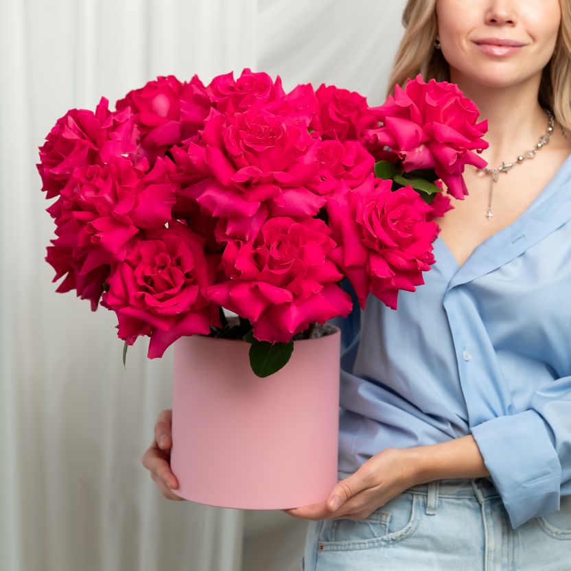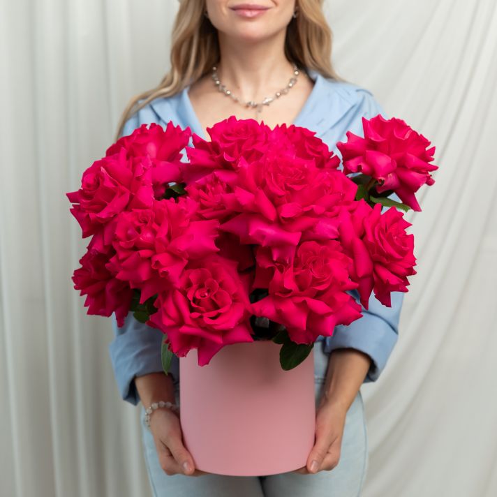 15 французских роз в шляпной коробке (сорт Пинк Флойд)