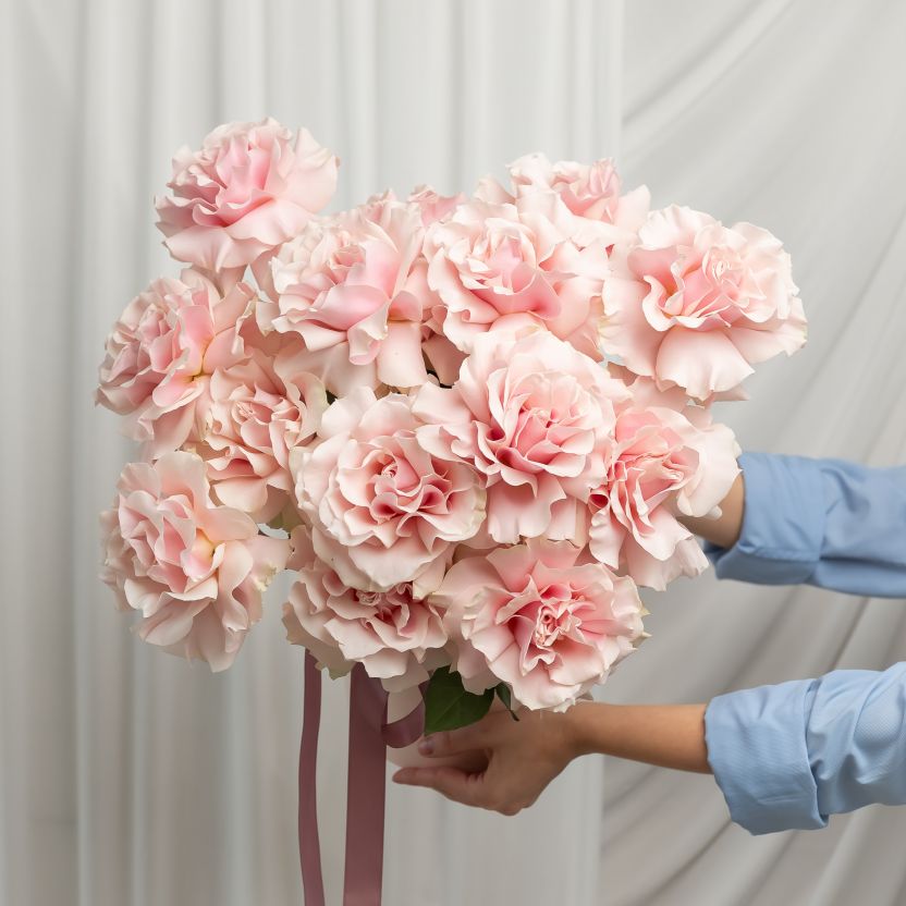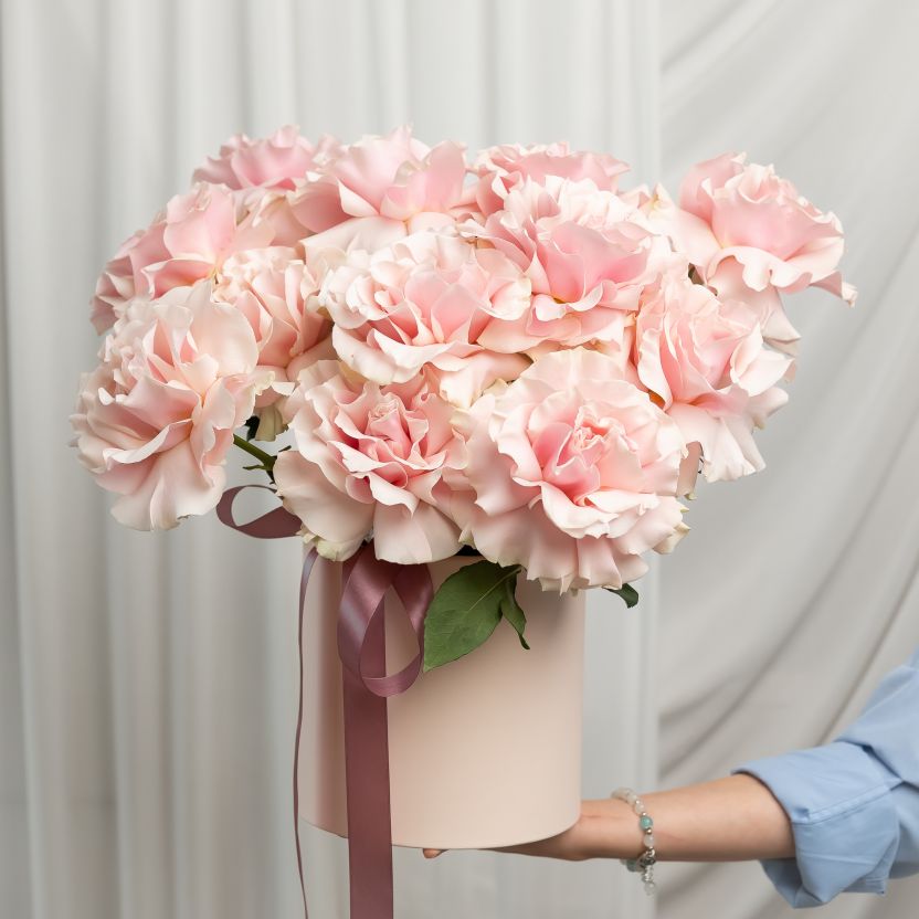 15 французских роз в шляпной коробке (сорт Пинк Мондиаль)