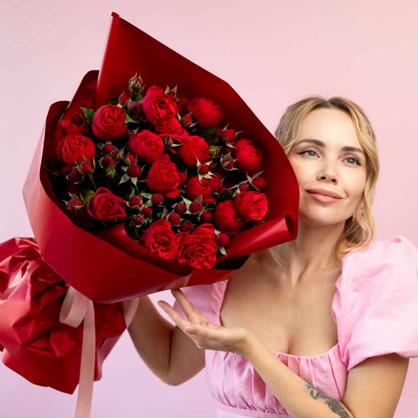 15 кустовых роз (сорт Ред Пиано)