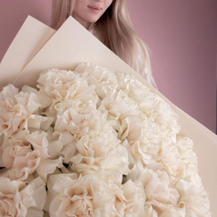 Стильный букет из 21 французской розы в упаковке фоамиран.