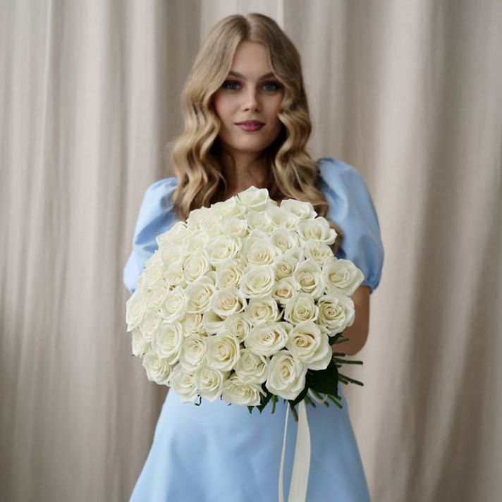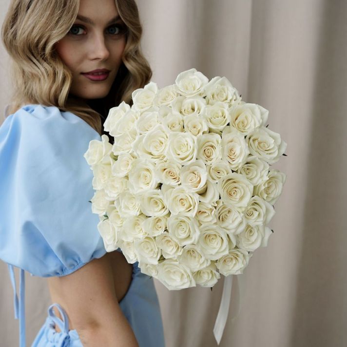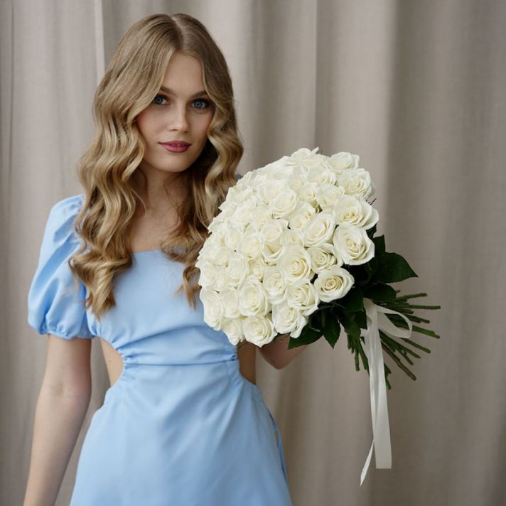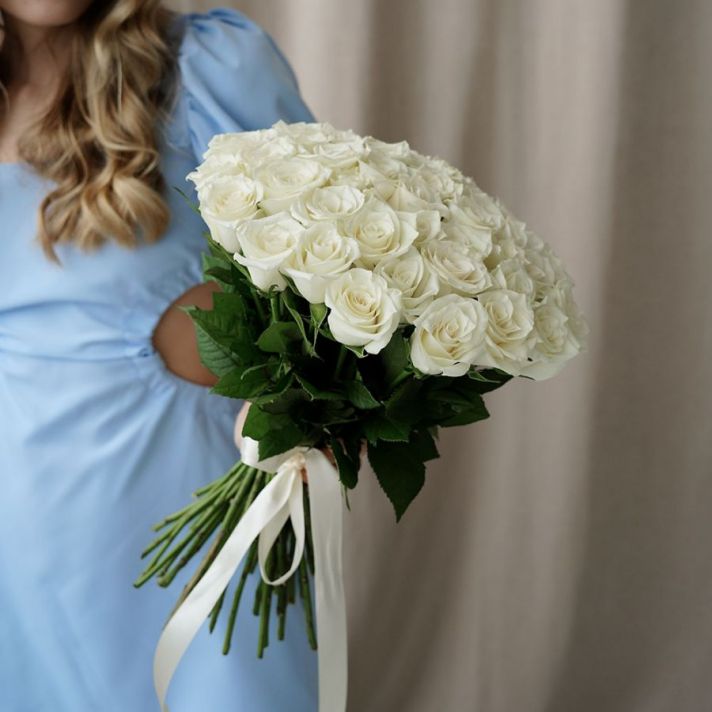 51 белая роза без упаковки (Кения, 40см)