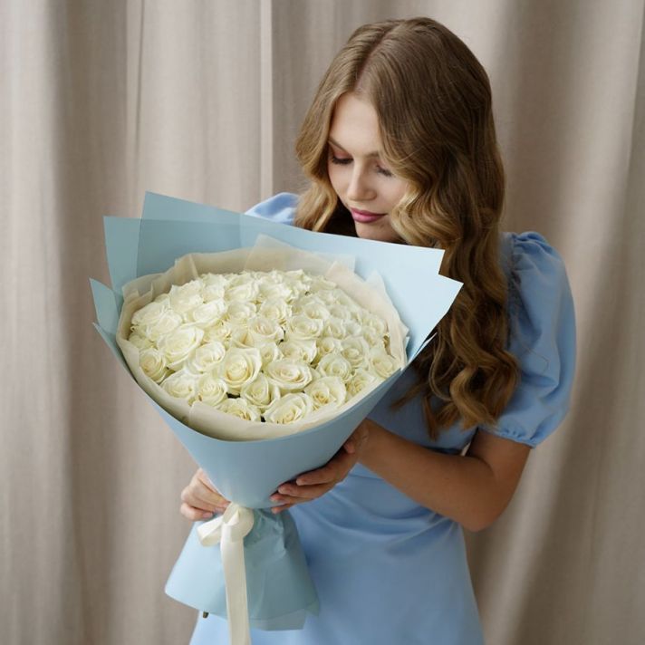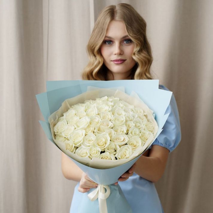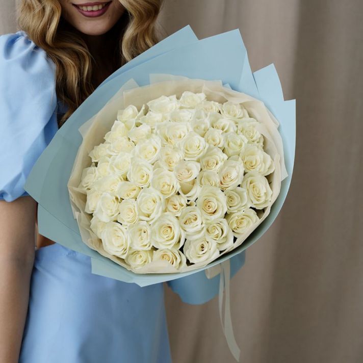 Описание товара "Белая роза от 7 шт (60см Эквадор)"
