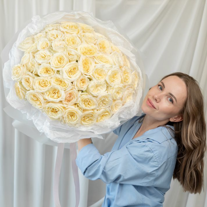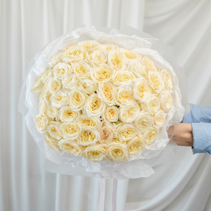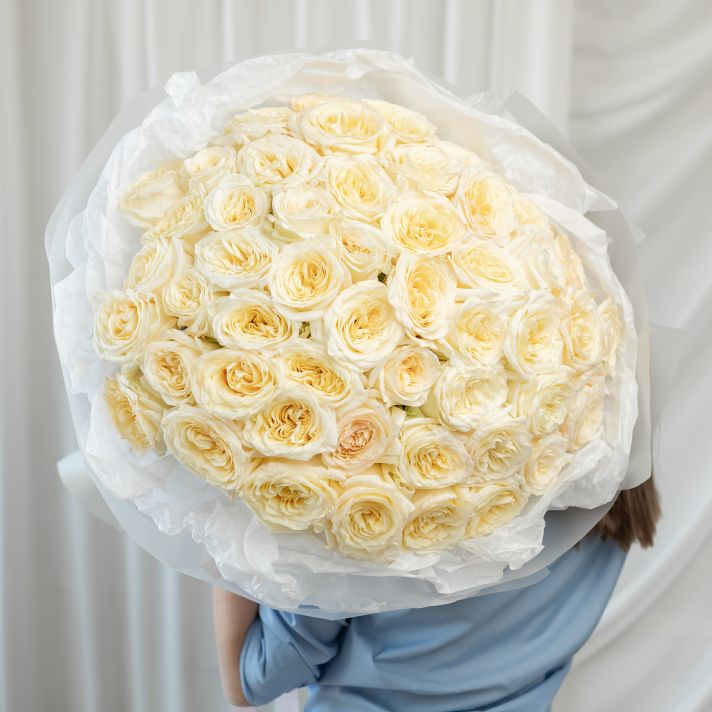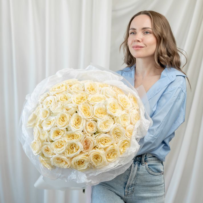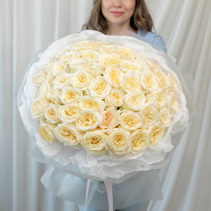 51 кремовая роза (60 см) в дизайнерской упаковке.