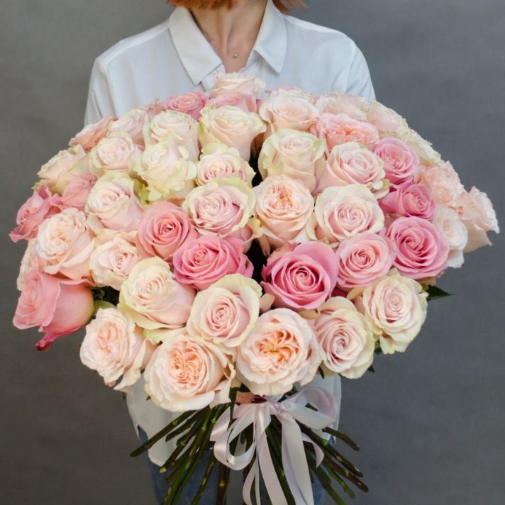 В зависимости от поставки некоторые оттенки  роз могут отличаться от исходного фото и могут быть заменены на аналогичные на усмотрение флориста. Цветовая гамма и стилистика букета остаются прежними.
