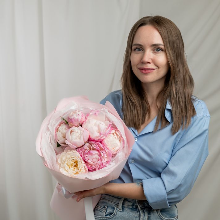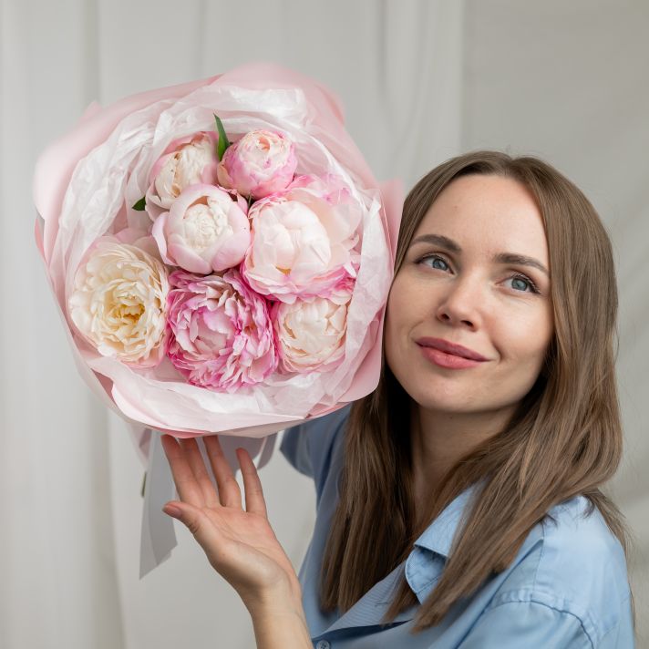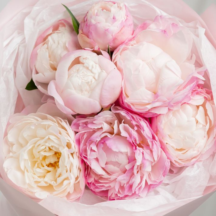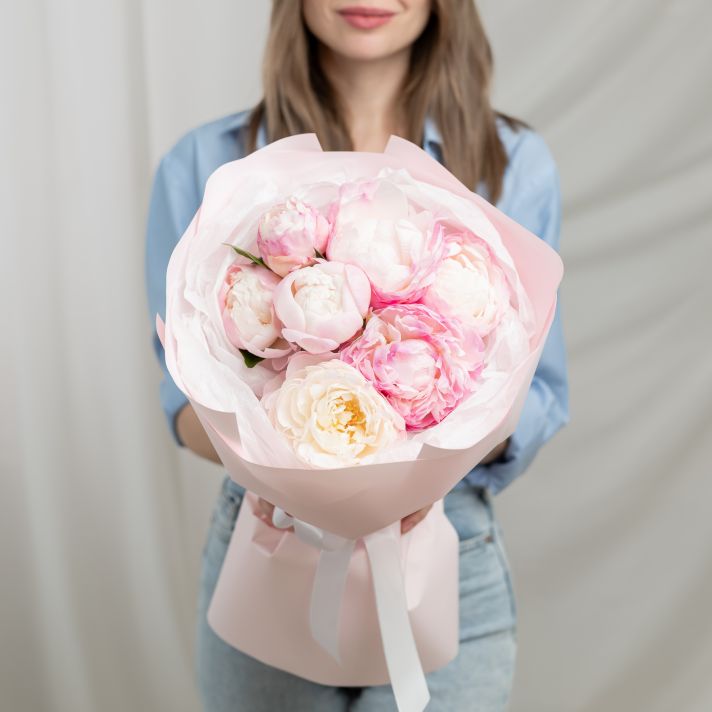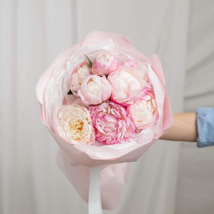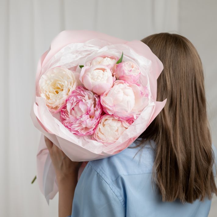 В составе 7 пионов (сорт Гаредния) в дизайнерской упаковке.