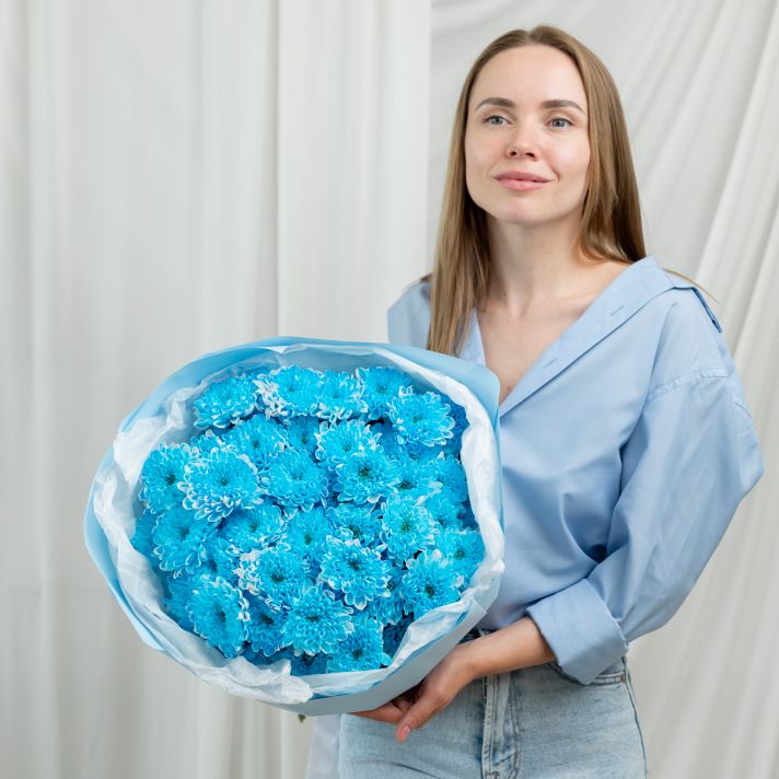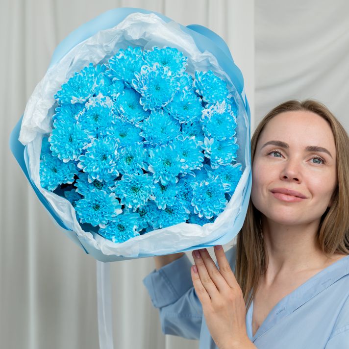 Синяя хризантема 9 шт