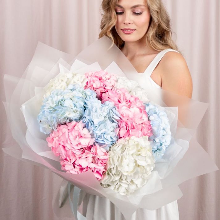 Букет из гортензий микс 9 шт