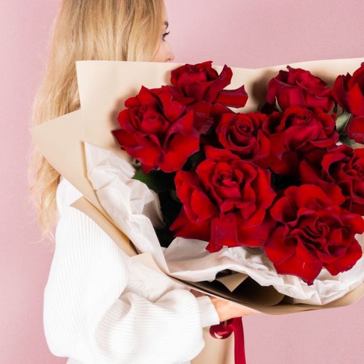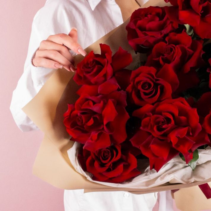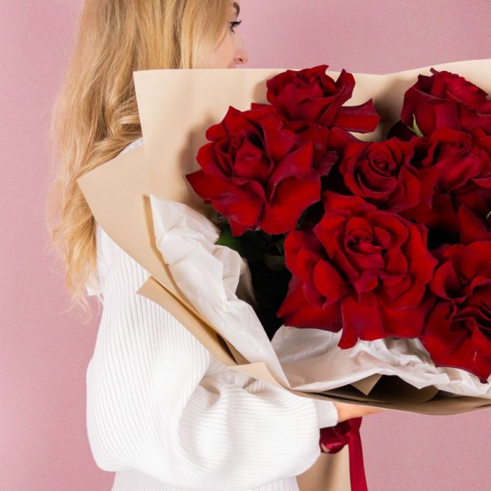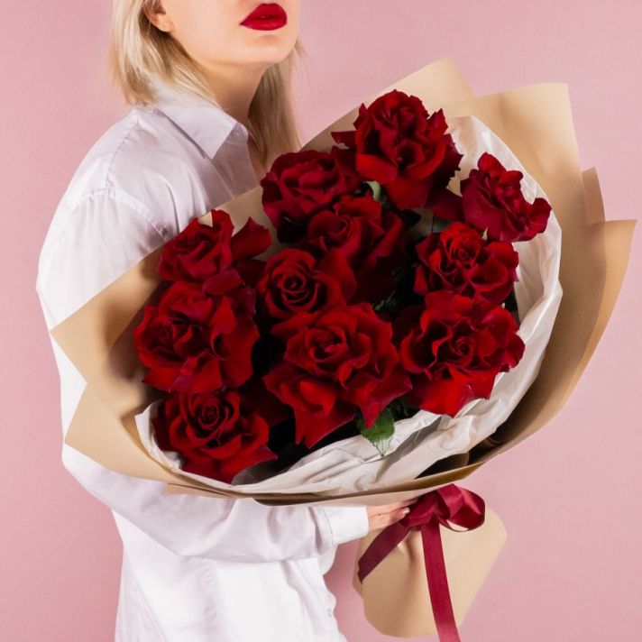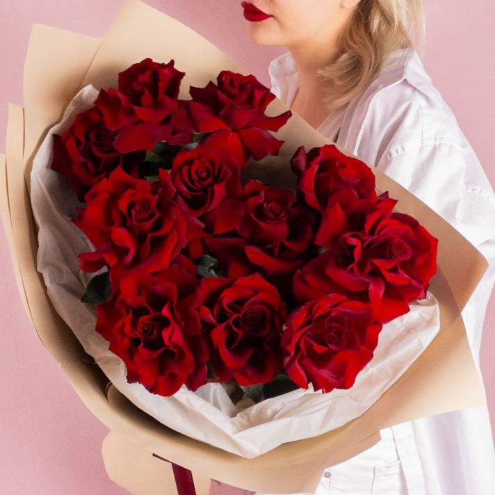 Стильный букет из французских роз в упаковке. Количество роз можно выбирать.