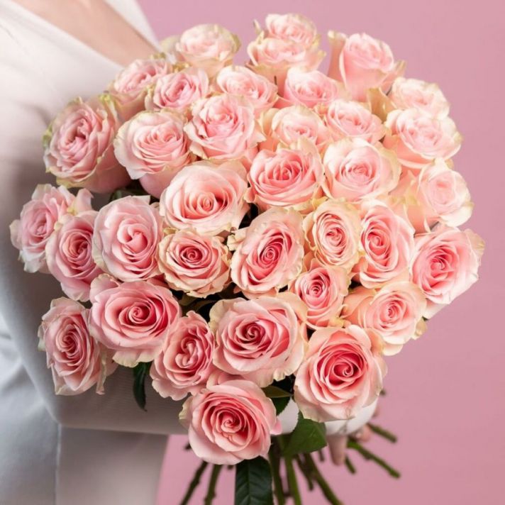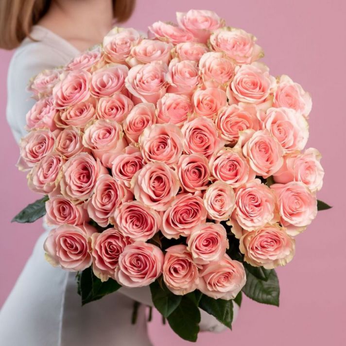 Нежно-розовая роза без упаковки от 9 шт (60см)