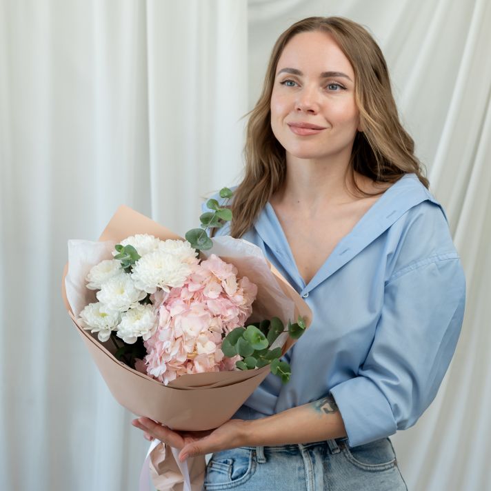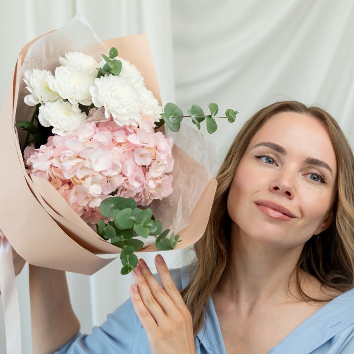 Гортензия - 1/ Хризантема - 1/ Эвкалипт - 1/ Упаковка- 1