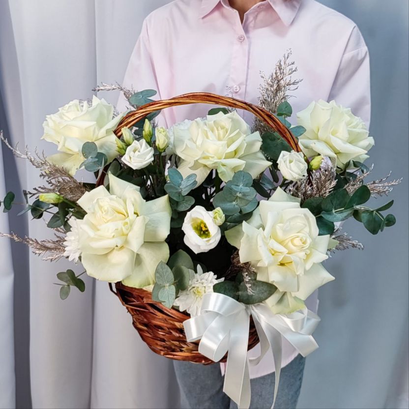 Корзина белых воздушных роз