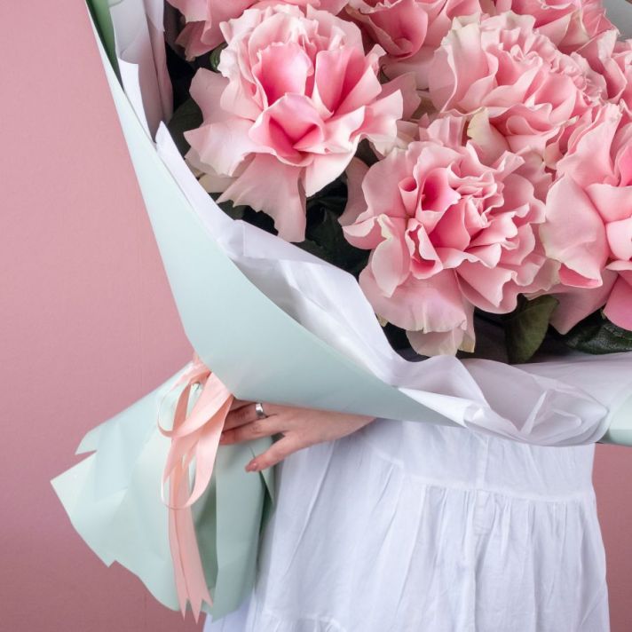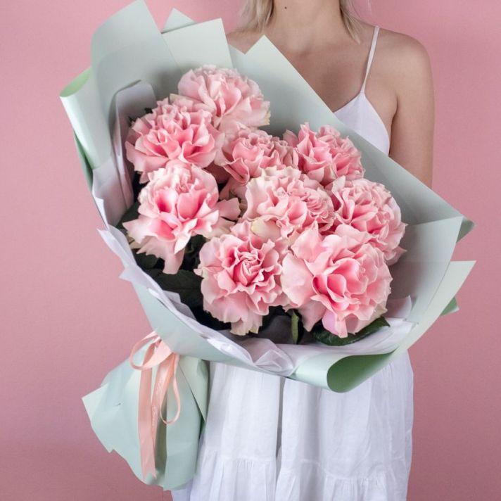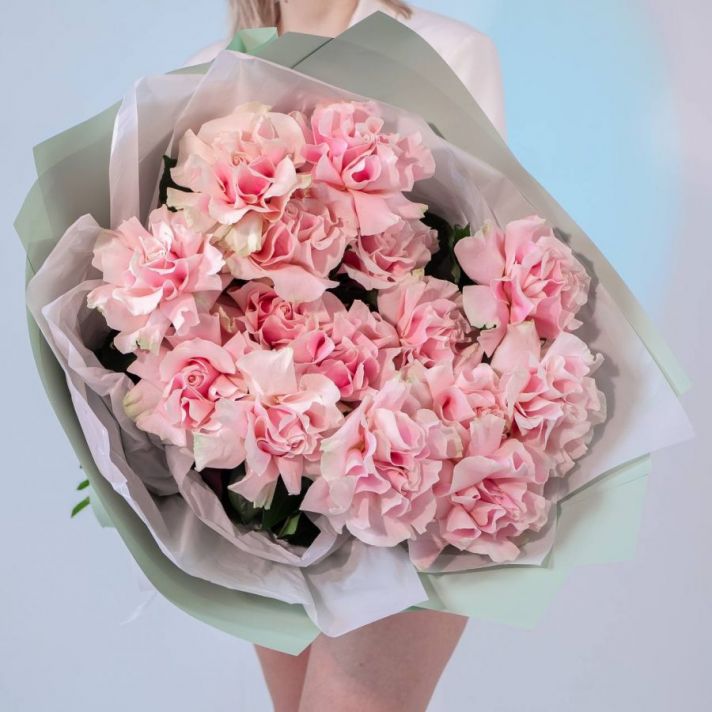 Стильный букет из французских роз в упаковке. Количество роз можно выбрать.