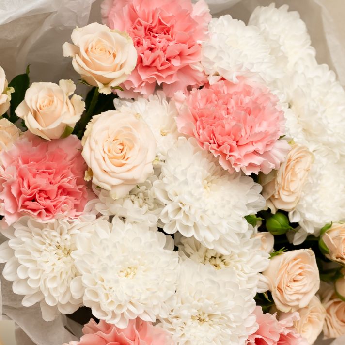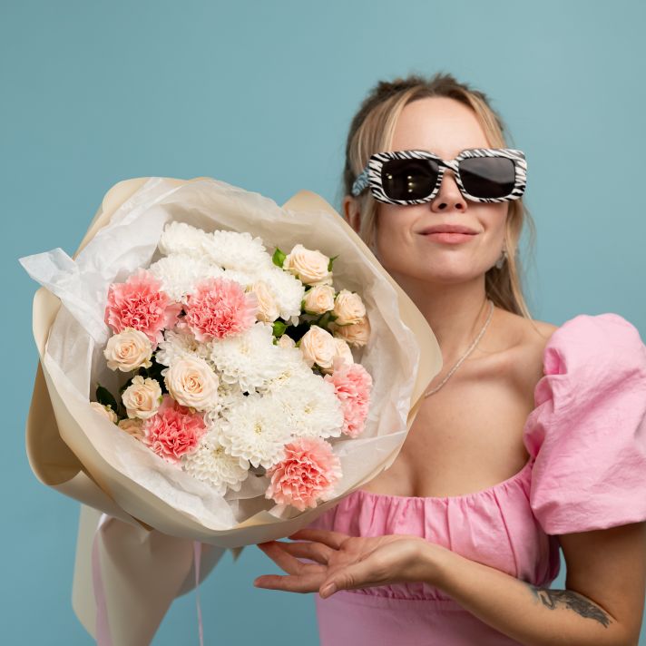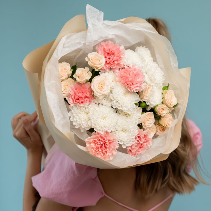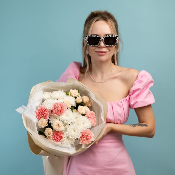 Все букеты мы собираем из цветов из новой, свежей поставки. Те цветы, которые не придут, мы заменим на похожие, чтобы наш с вами букет был таким же красивыми гармоничным.