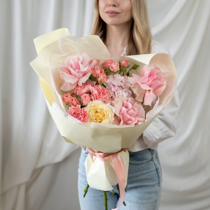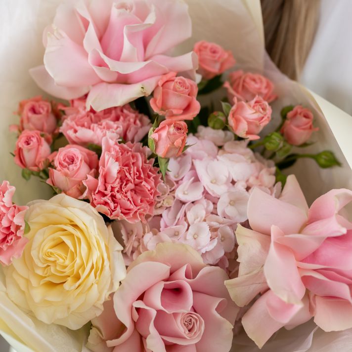 Французская роза - 3 / Гортензия - 1 / Роза Кендл Лайт - 1 / Диантус - 3 / Кустовая роза - 2
