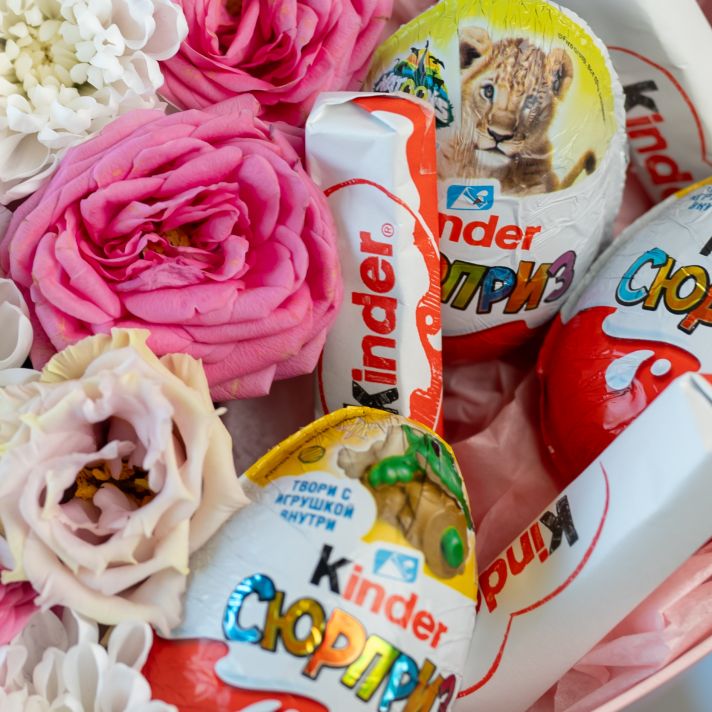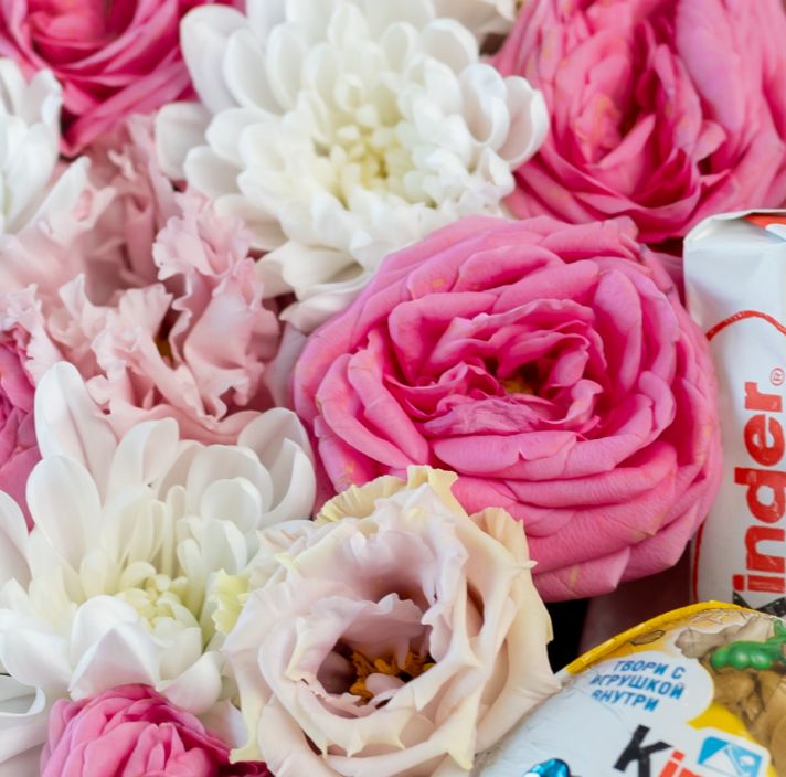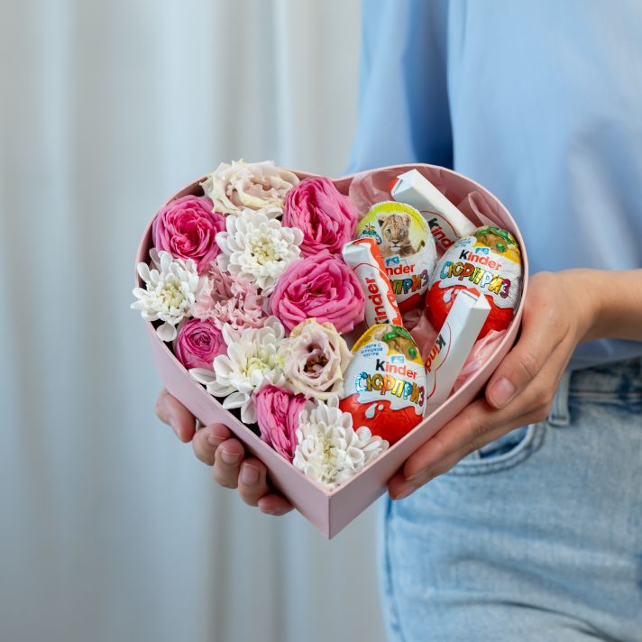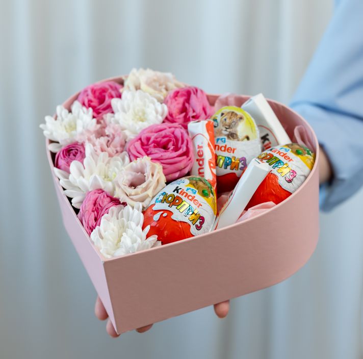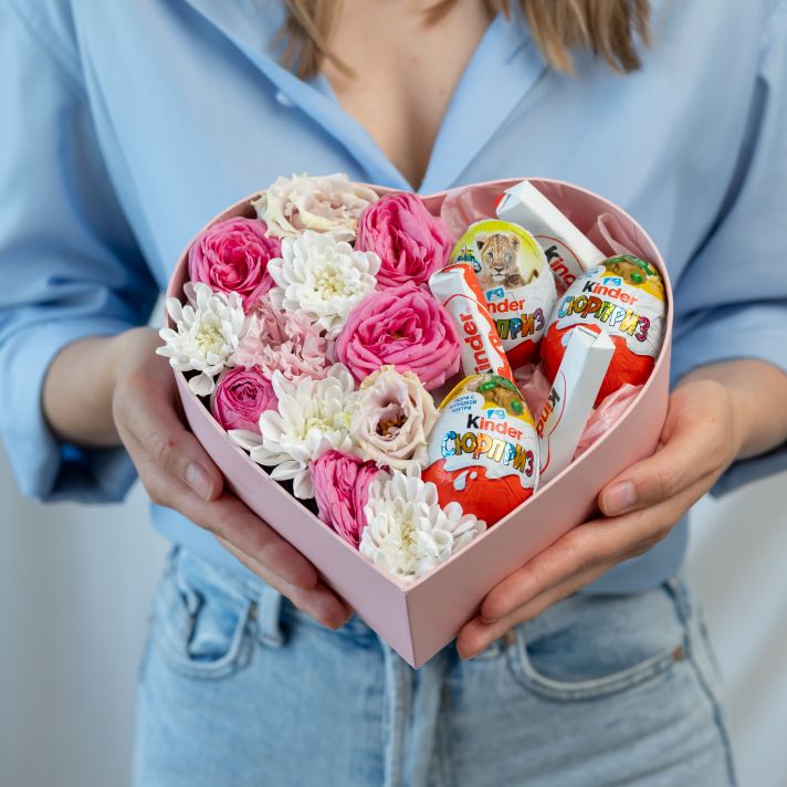 Сердце: ромашки, роза, шоколад