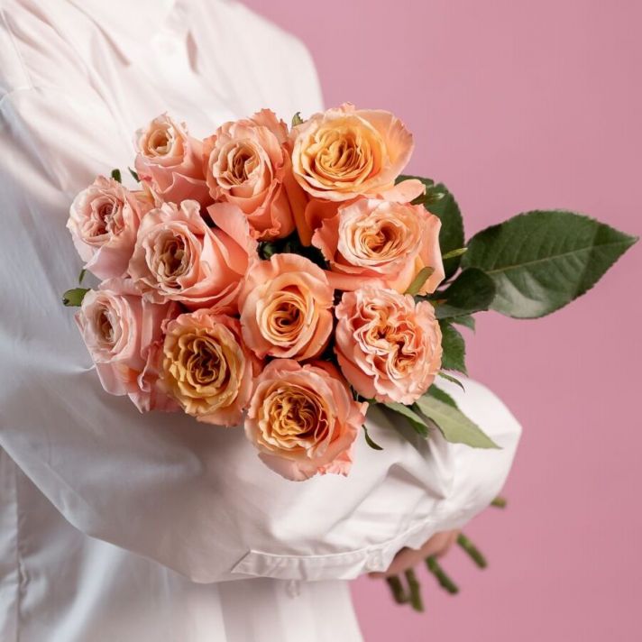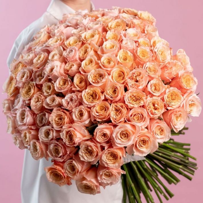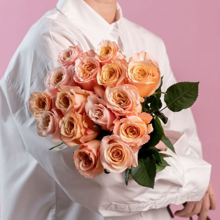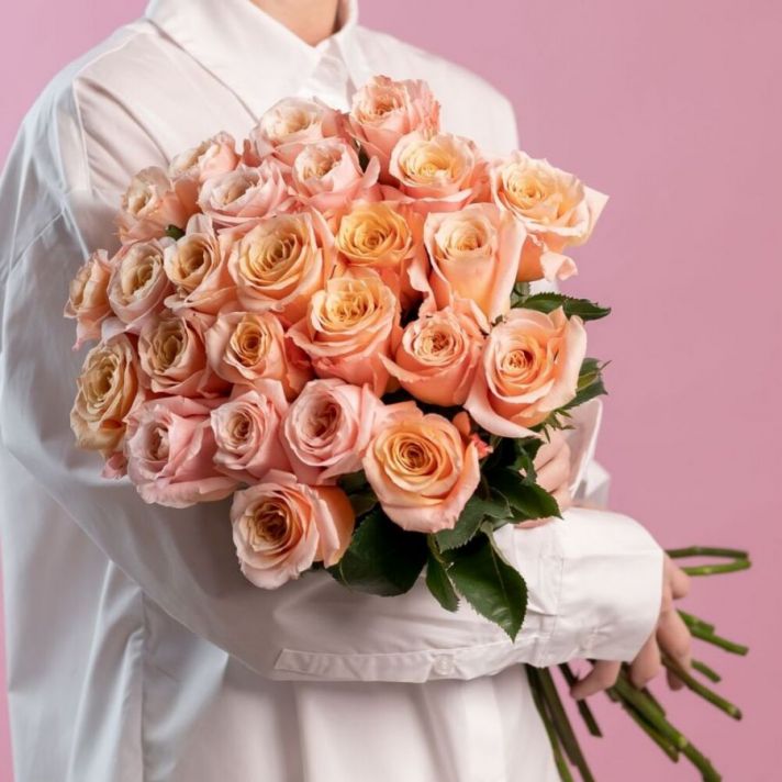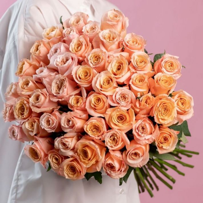 Персиковая роза от 9 шт (Эквадор, 60см)
