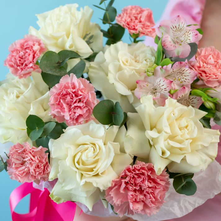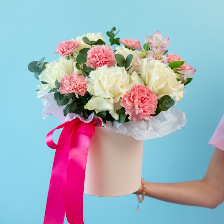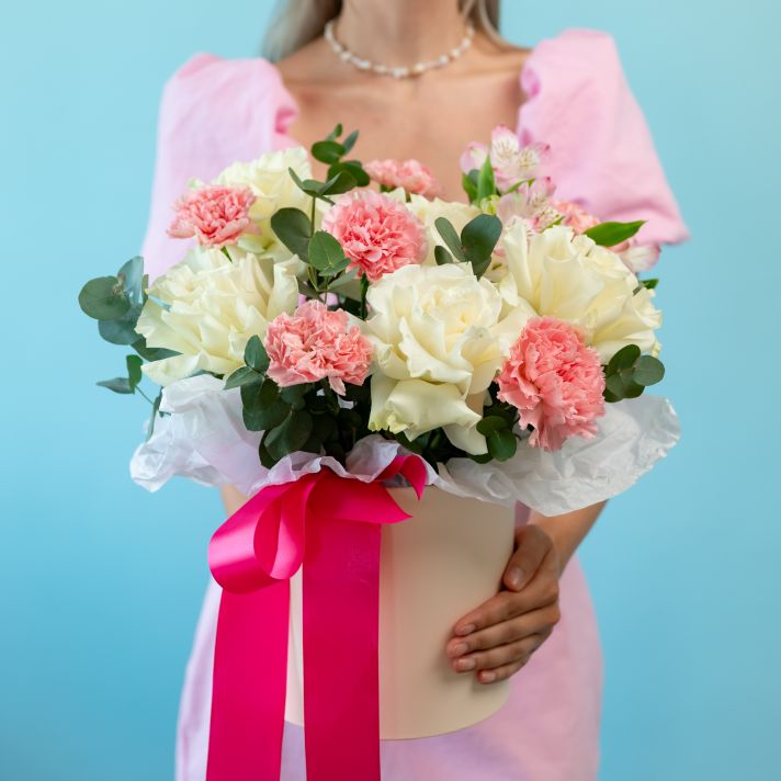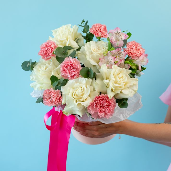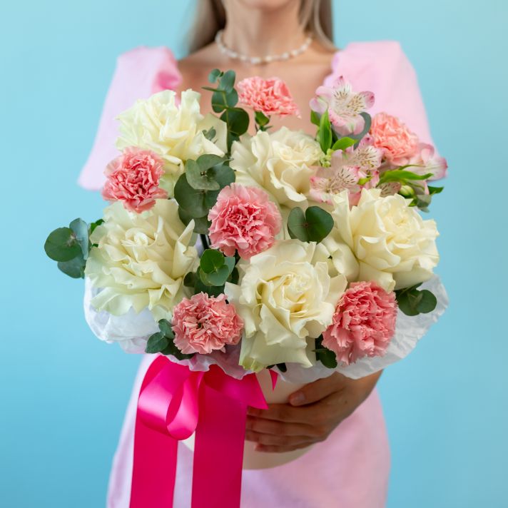 В зависимости от поставки некоторые оттенки цветов могут отличаться от исходного фото и могут быть заменены на аналогичные на усмотрение флориста. Цветовая гамма и стилистика букета остаются прежними.