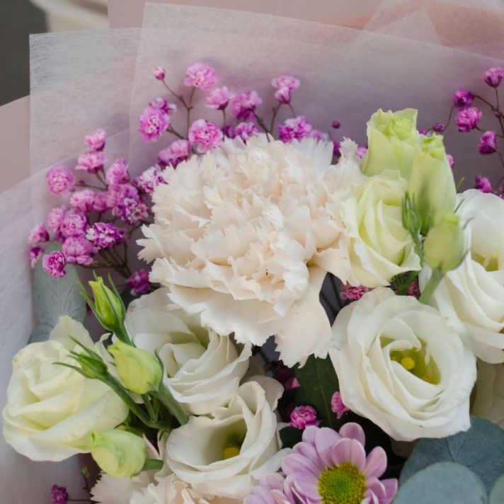 Букет с диантусами "Молочная девочка"