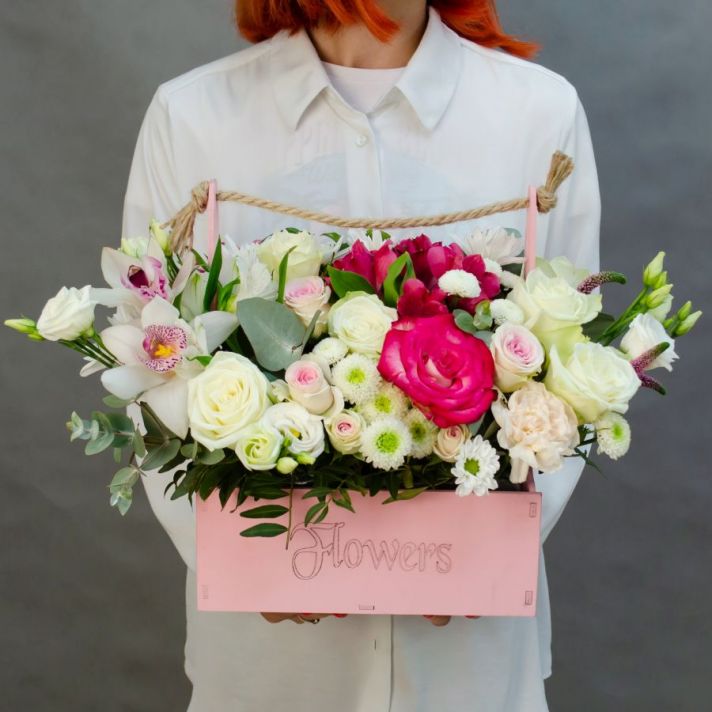Собранная в нежных тонах этот цветочный ящик "Нежное Романтическое Настроение" создаст облако цветочного аромата, а его название говорит само за себя.