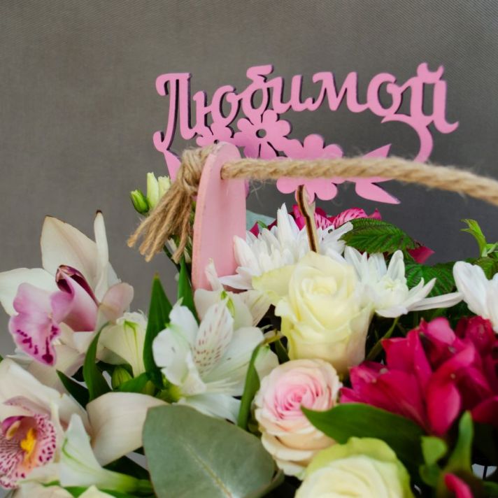 Топпер (деревянная надпись) в состав композиции не входит и приобретается отдельно.
