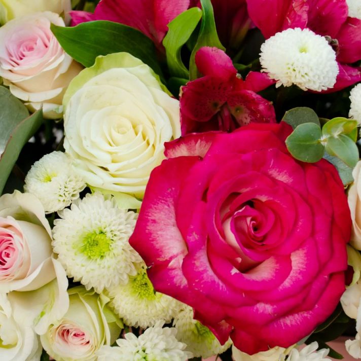 В зависимости от поставки некоторые оттенки цветов и ящика могут отличаться от исходного фото и могут быть заменены на аналогичные на усмотрение флориста. Цветовая гамма и стилистика букета остаются прежними.