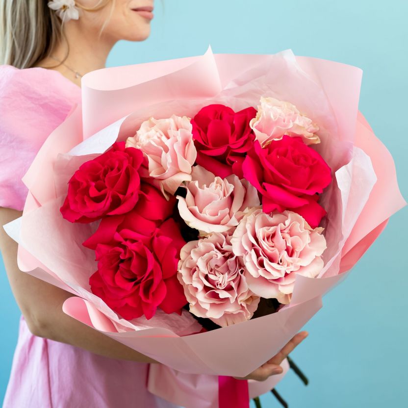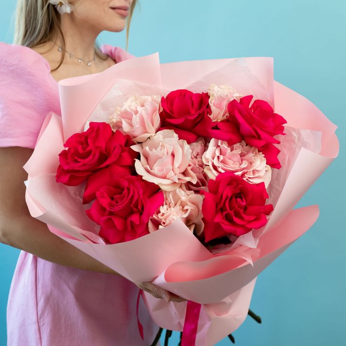 Описание товара "11 французских роз (сорт Пинк Мондиаль)"