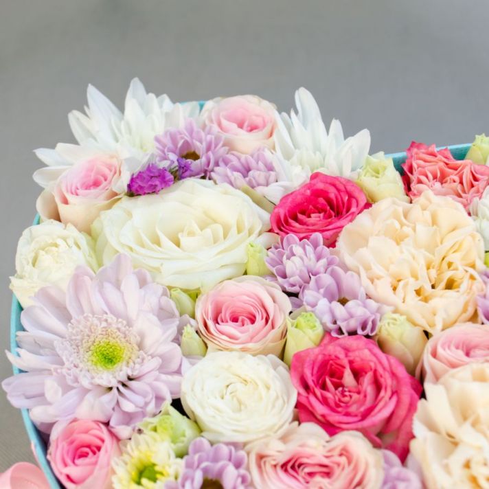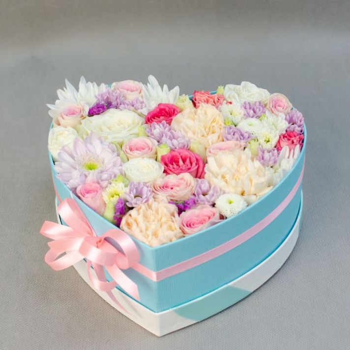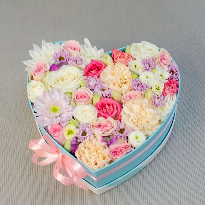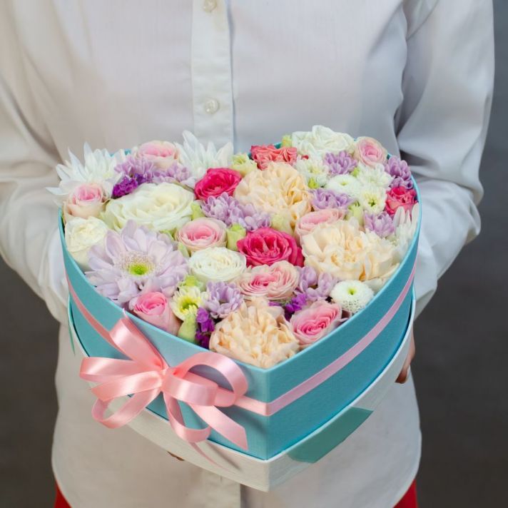 Цветочная композиция в коробке сердце. Красивое и простое сочетание, которое поможет выразить искренние намерения.