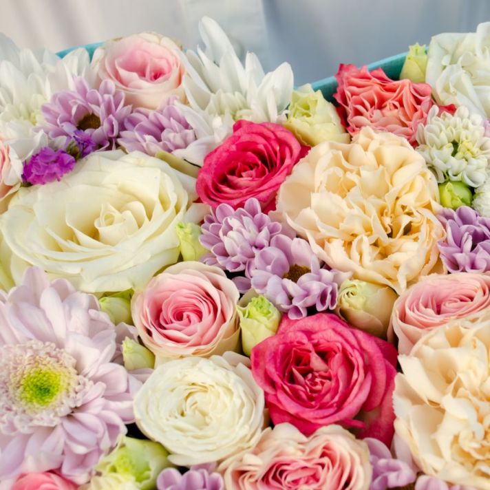 В связи с сезонностью, состав букета и цвет коробки может быть изменен на усмотрение флориста. Стилистика и цветовая гамма останутся прежними.