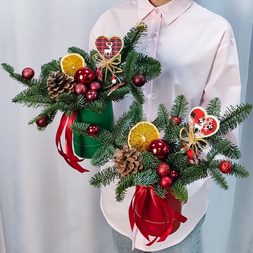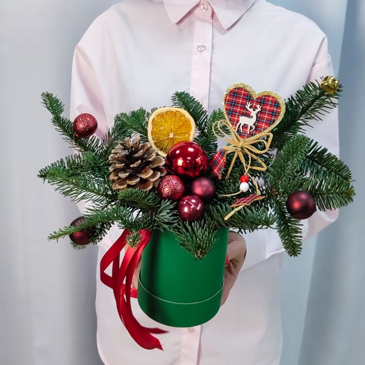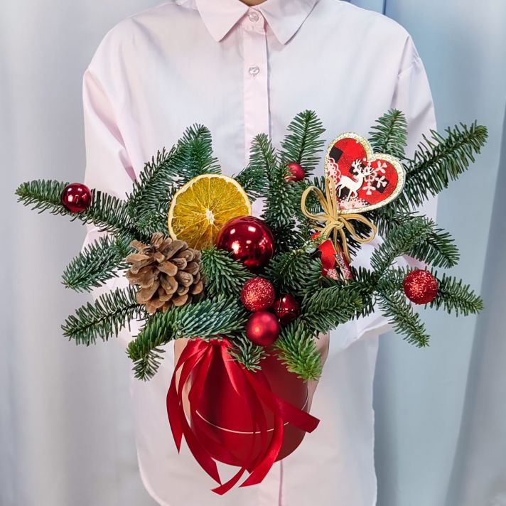 В зависимости от поставки некоторые  декоративные элементы могут отличаться от исходного фото и могут быть заменены на аналогичные на усмотрение флориста. Цветовая гамма и стилистика букета остаются прежними.