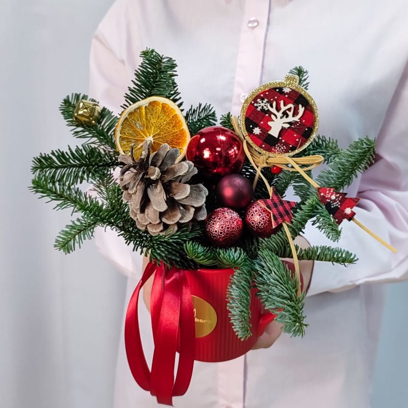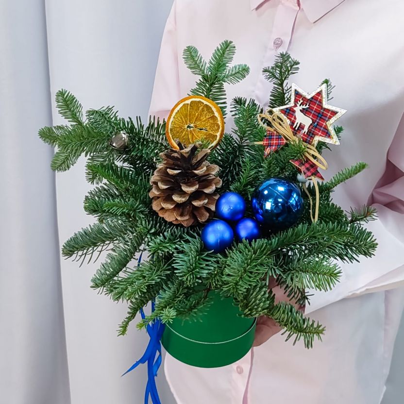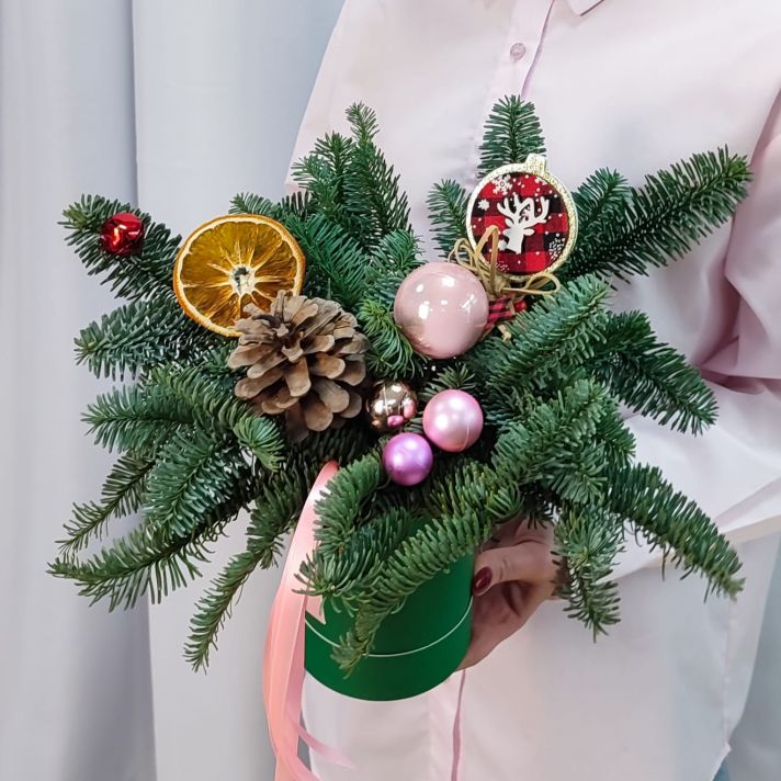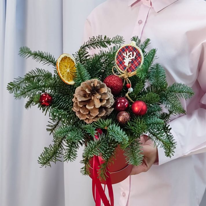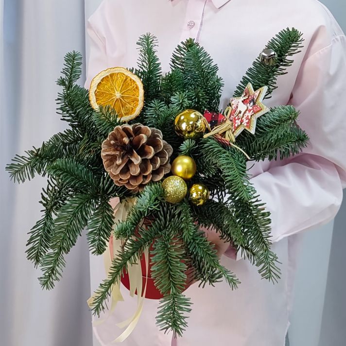 В зависимости от поставки некоторые  декоративные элементы могут отличаться от исходного фото и могут быть заменены на аналогичные на усмотрение флориста. Цветовая гамма и стилистика букета остаются прежними.