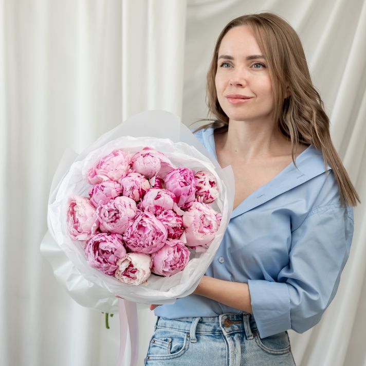 Пионы розовых  оттенков — символ удачи и счастливого брака. Они олицетворяют любовь и романтику и являются одними из самых популярных цветов для свадебных букетов и букетов невест.