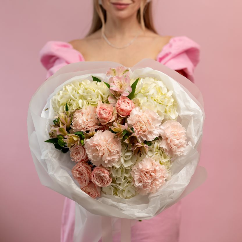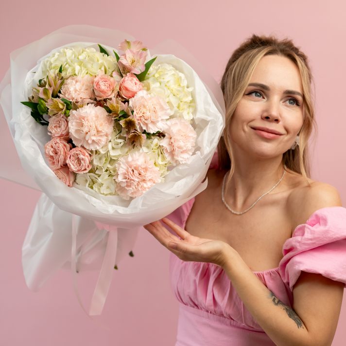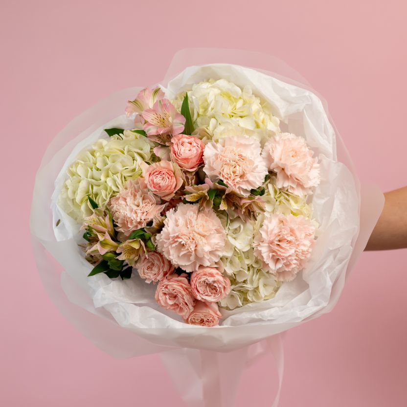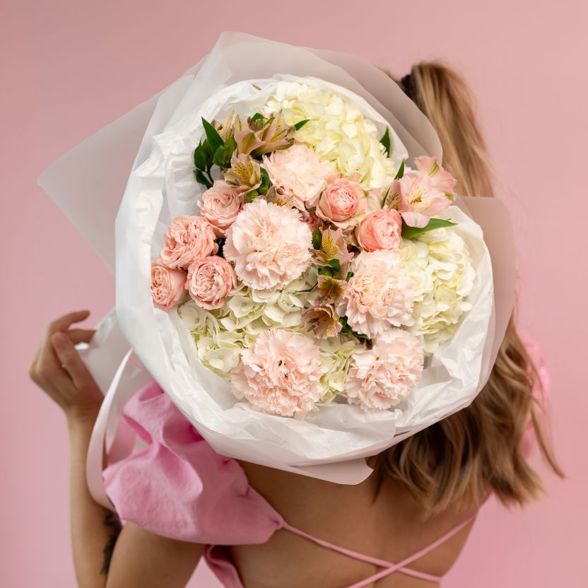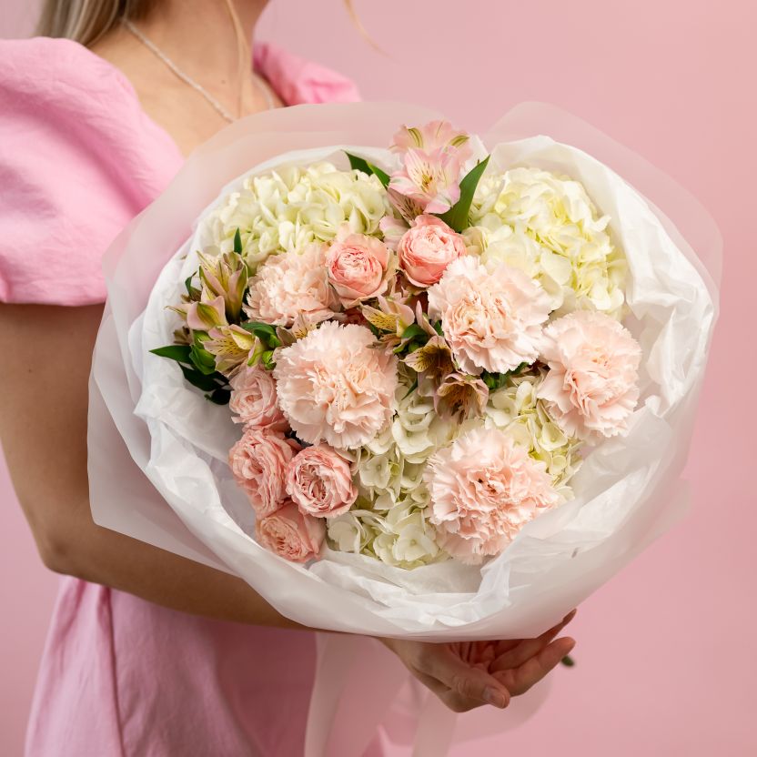В зависимости от поставки некоторые оттенки цветов и упаковки могут отличаться от исходного фото и могут быть заменены на аналогичные на усмотрение флориста. Цветовая гамма и стилистика букета остаются прежними.